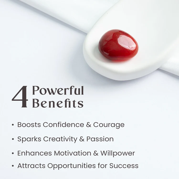 Carnelian is associated with Surya Dev (Sun) and also resonates with Mangal (Mars), making Sunday the most auspicious day. -