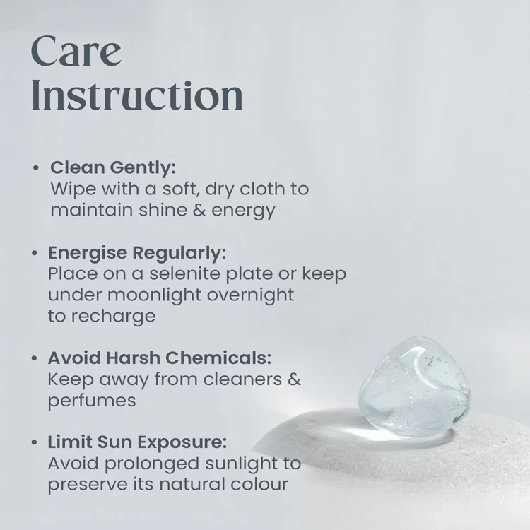 Keep the crystal under moonlight overnight for natural energetic renewal.